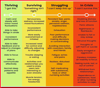 Self-Awareness: Identifying whether you're thriving, surviving, struggling, or in crisis helps you recognize what support you need.