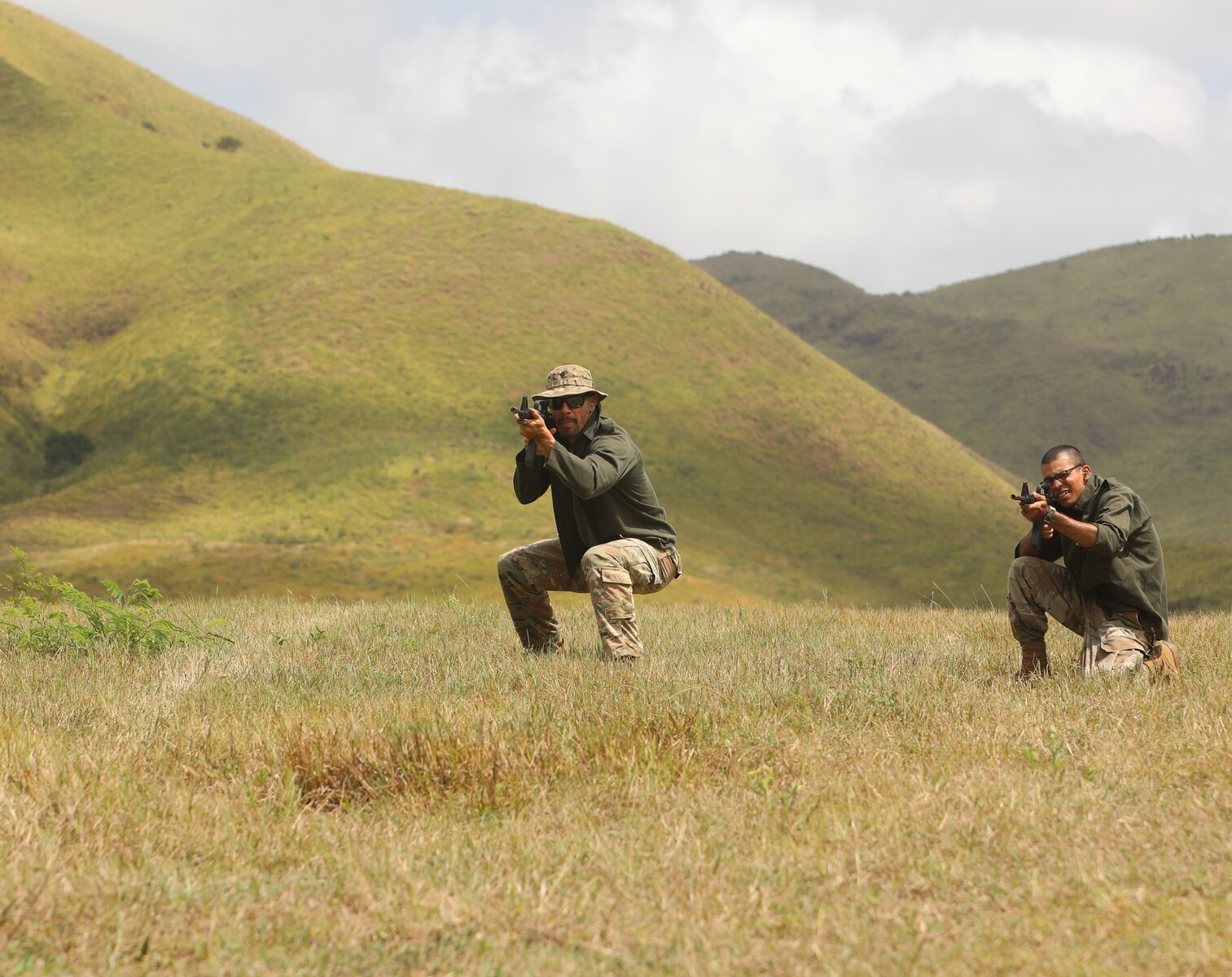 U.S. Army Reserve Soldiers assigned to the 1st Mission Support Command role-play Opposition Forces (OPFOR) to simulate an attack on a U.S. Army Reserve Convoy during Caribbean Thunder 25 Situational Training Exercise (STX) lanes, in Camp Santiago, Salinas, Puerto Rico, Aug 4, 2025. (U.S. Army Reserve photo by Sgt. Edrik Torres)