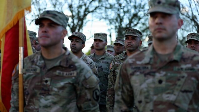 U.S. Army Reserve Soldiers from the 1st Mission Command stand in formation during the opening ceremony for the inaugural Army of the Caribbean Week 2026 in Fort Buchanan, Puerto Rico, Jan. 7, 2026. The 1st MSC’s presence in Puerto Rico underscores the U.S. Army’s commitment to national defense and disaster preparedness in the region. It demonstrates the Army’s posture to respond swiftly to crises when called upon, from domestic disaster response to supporting combat operations worldwide. (U.S. Army photo by Staff Sgt. Tristan Peete)