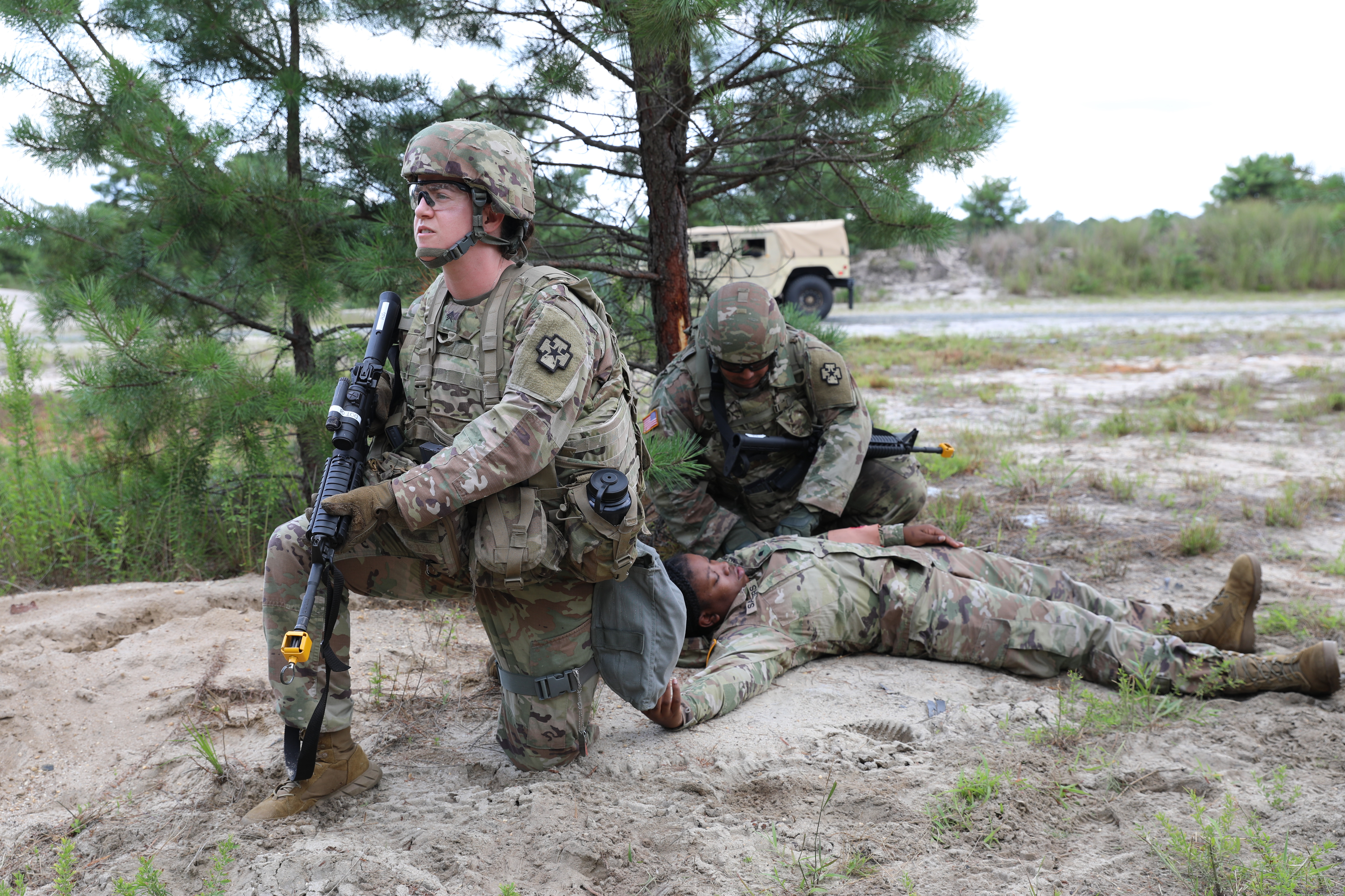 The 445th Medical Detachment (Veterinary Services), based in Independence, Missouri, is used to a unique mission set of safeguarding food supplies, supporting military working dogs, and ensuring animal health by running vet treatment facilities. But at WAREX, a two-week field exercise designed to replicate the stress, friction and unpredictability of modern conflict, the unit focused on sharpening basic soldiering skills and practicing how to operate tactically under austere conditions.