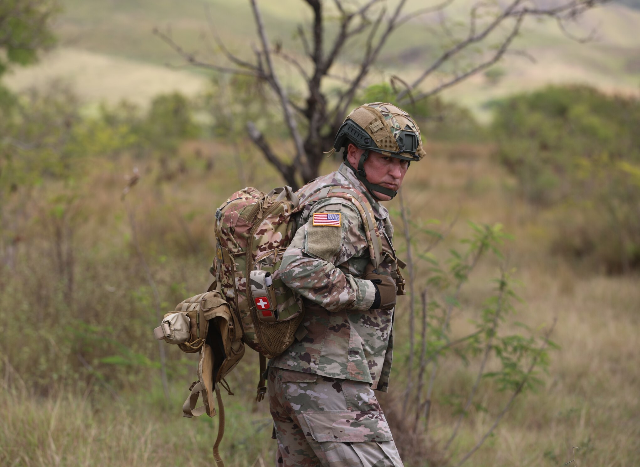 U.S. Army Puerto Rico National Guard Sgt. 1st Class Jose Santiago a combat medic specialist, observes U.S. Army Reserve Soldiers from the 1st Mission Support Command during Caribbean Thunder 25 Situational Training Exercise (STX) lanes in Camp Santiago, Salinas, Puerto Rico, Aug 4, 2025. Caribbean Thunder is an annual exercise designed to train and prepare units for supporting Large-Scale Combat Operations (LSCO), enhance its warfighting readiness, and ability to respond to crisis or conflict. (U.S. Army Reserve photo by Sgt. Edrik Torres)