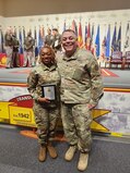 U.S. Army SSG Jazlyn Bailey poses with Col. Charles Fairbanks, Support Operations Assistant Chief of Staff during her recent deployment, following the Transportation of the Year awards ceremony in May 2025. Bailey was selected at the 2024 Transportation Non-Commissioned Officer of the Year for the U.S. Army Reserve. (Courtesy Photo)