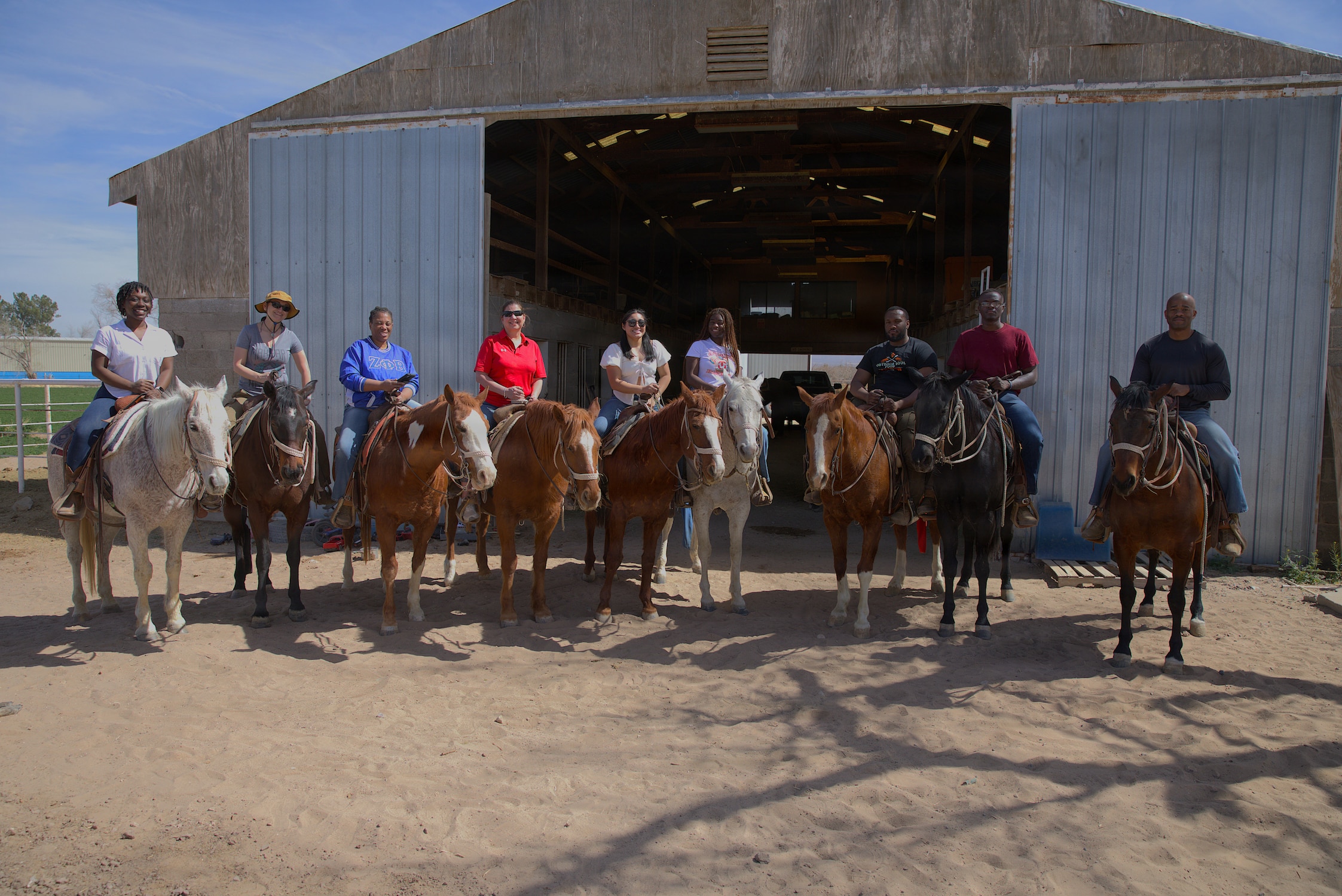 90th Sustainment Brigade soldiers participate in a trail ride to build unit morale, March 1, 2025, near Santa Teresa, N.M. 90th SB’s Task Force Tough ‘Ombres was deployed to the U.S. southern border from Oct. 16, 2024 to Nov. 12, 2025, and assigned to Joint Task Force-Southern Border, which executes full-scale, agile, and all-domain operations in support of U.S. Customs and Border Protection to protect the territorial integrity of the United States and achieve 100% operational control of the border. (U.S. Army Reserve photo by Sgt. Logan Lechuga)