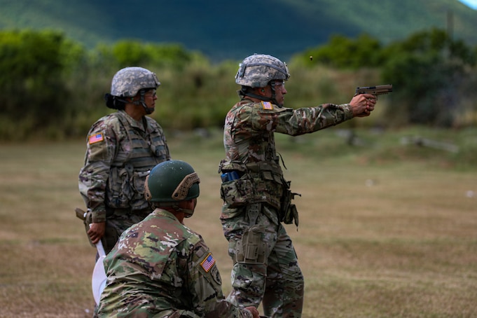 U.S. Army Reserve Soldiers from the 402nd Civil Affairs Battalion, 1st Mission Support Command, conduct individual weapons qualification at Camp Santiago, Salinas, Puerto Rico Jan. 10, 2026.The Army of the Caribbean Week, the first event of its kind in the region, underscores the commitment to duty and readiness within the Caribbean. (U.S. Army Reserve photo by Staff Sgt Bryanne Vega)