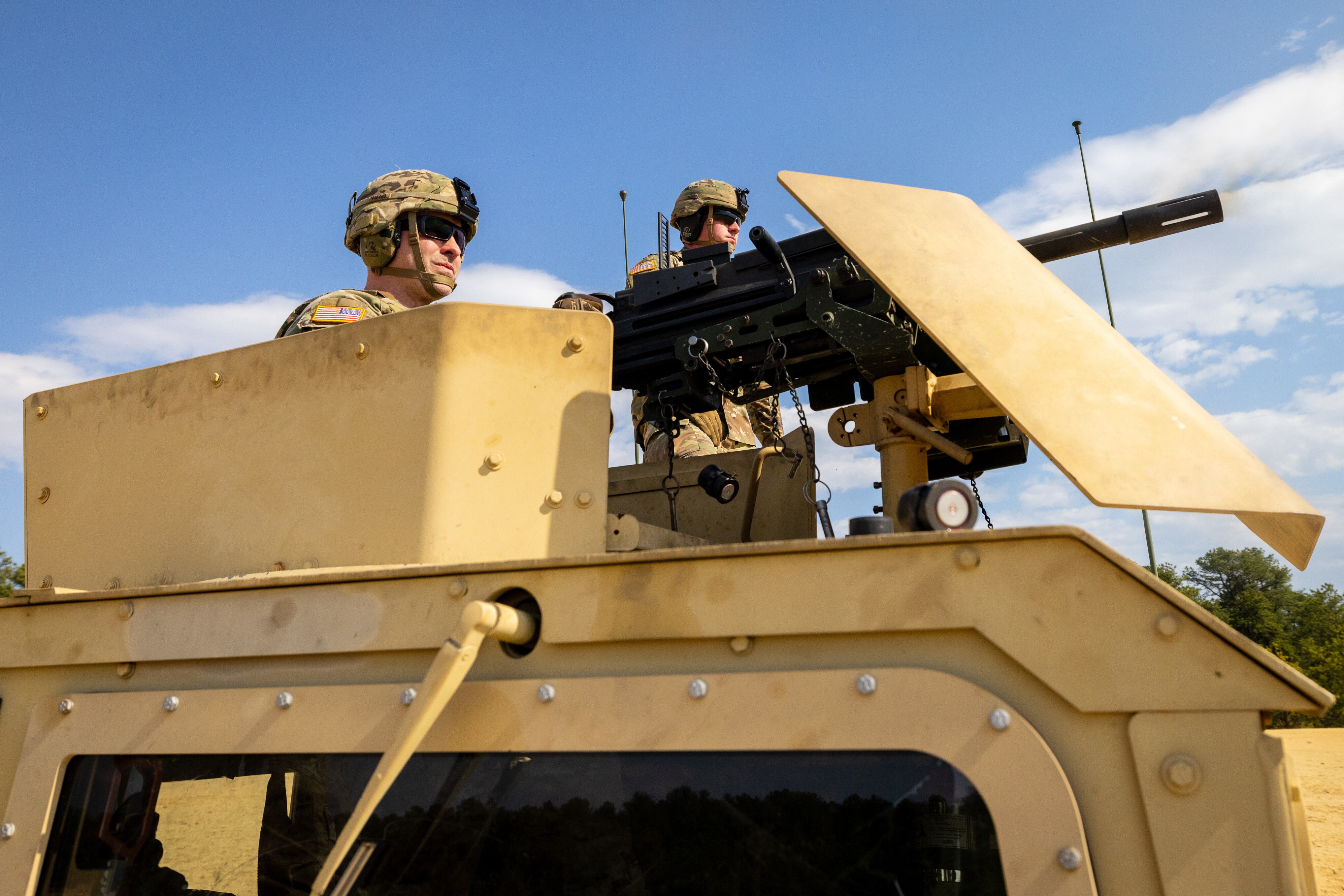 U.S. Army Soldiers, with the 333rd Military Police Brigade, train on the Mk 19 40mm belt-fed automatic grenade launcher during a crew-served weapons range at Fort Dix, N.J., March 29, 2025. The Mk 19 is a belt-fed, blowback-operated, air cooled, crew-served, fully-automatic weapon that fires 40mm grenades.(U.S. Army Photo by Master Sgt. Justin P. Morelli)