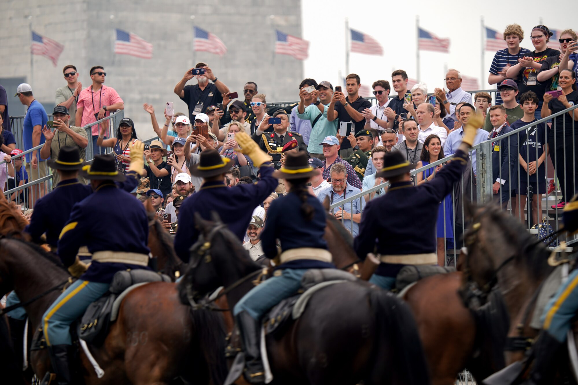 Soldiers wave to the crowd during the 250th Army Birthday Parade in Washington, D.C., June 14, 2025. (U.S. Army photo by Sgt. 1st Class Crystal Harlow)